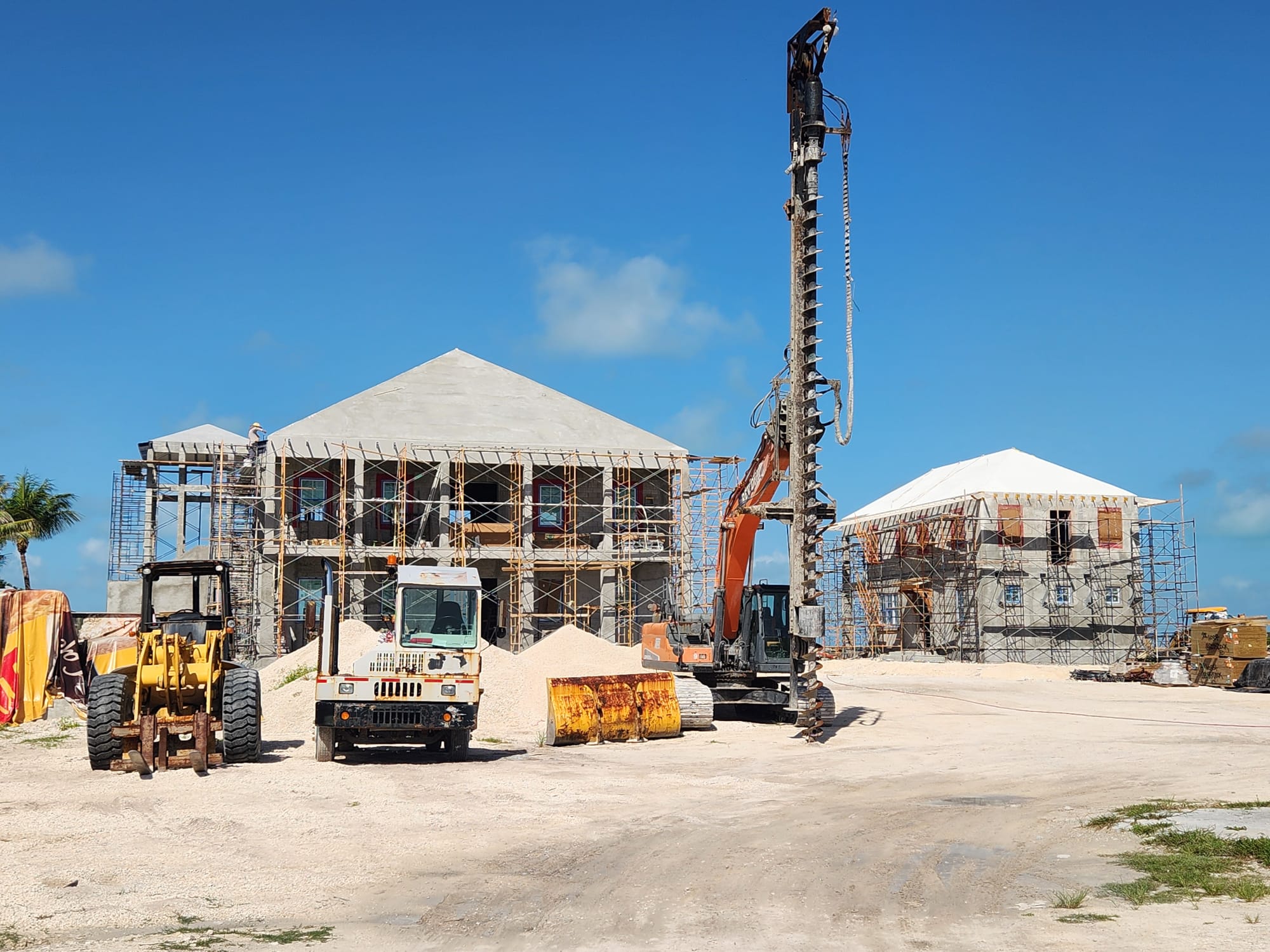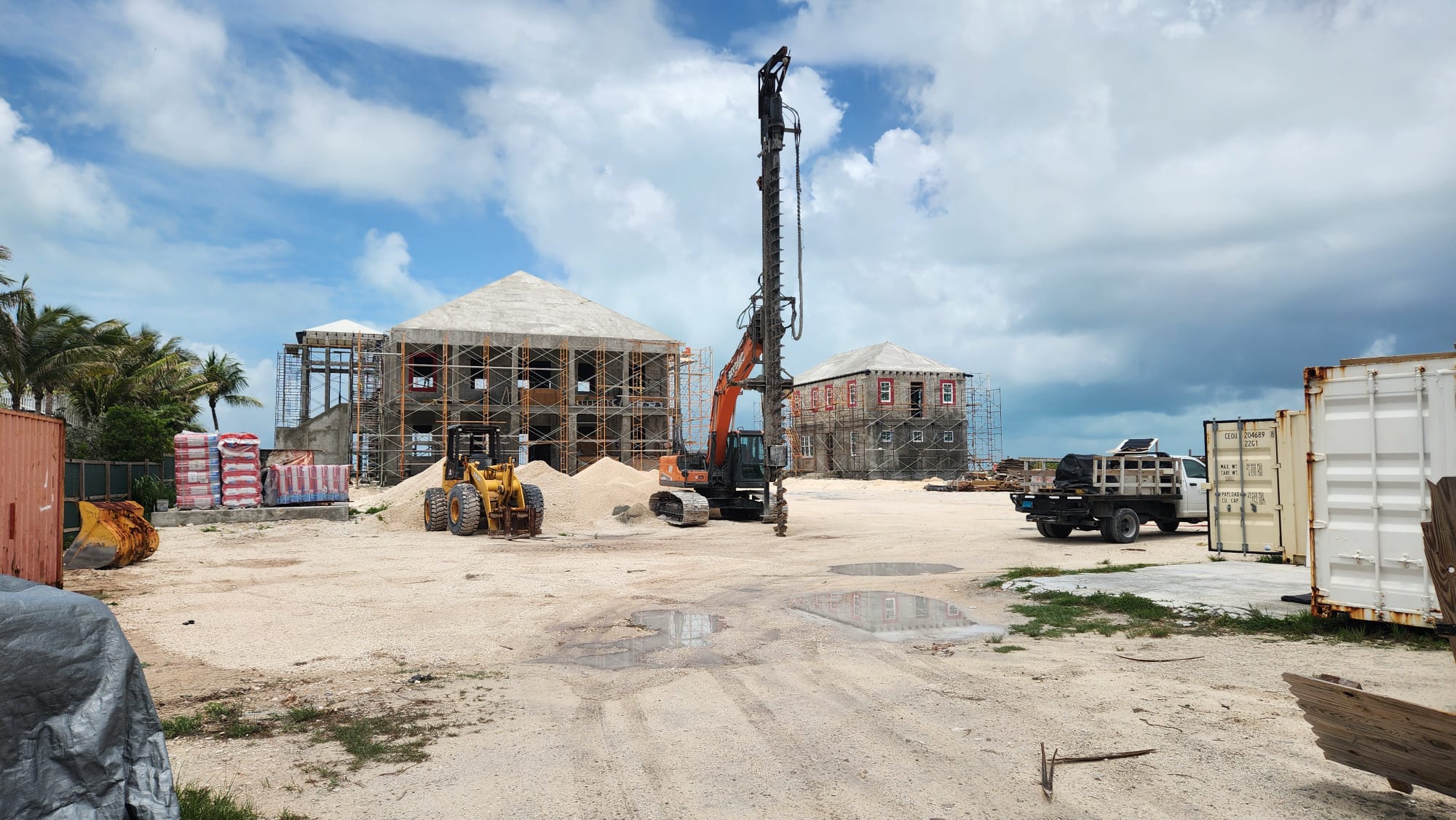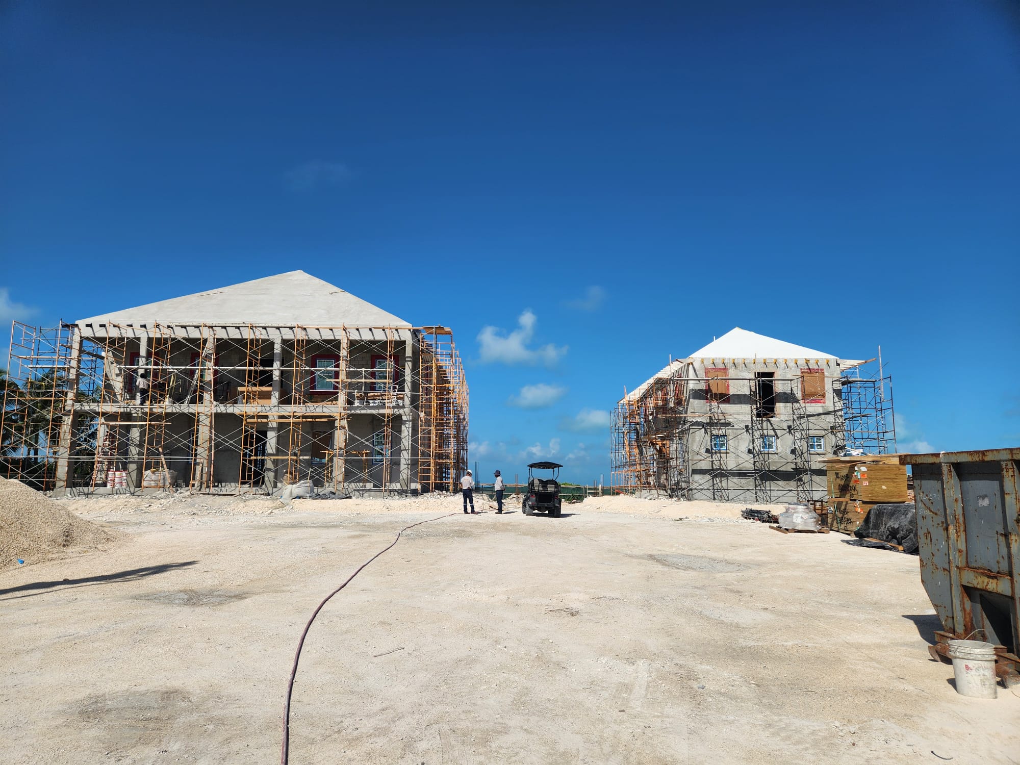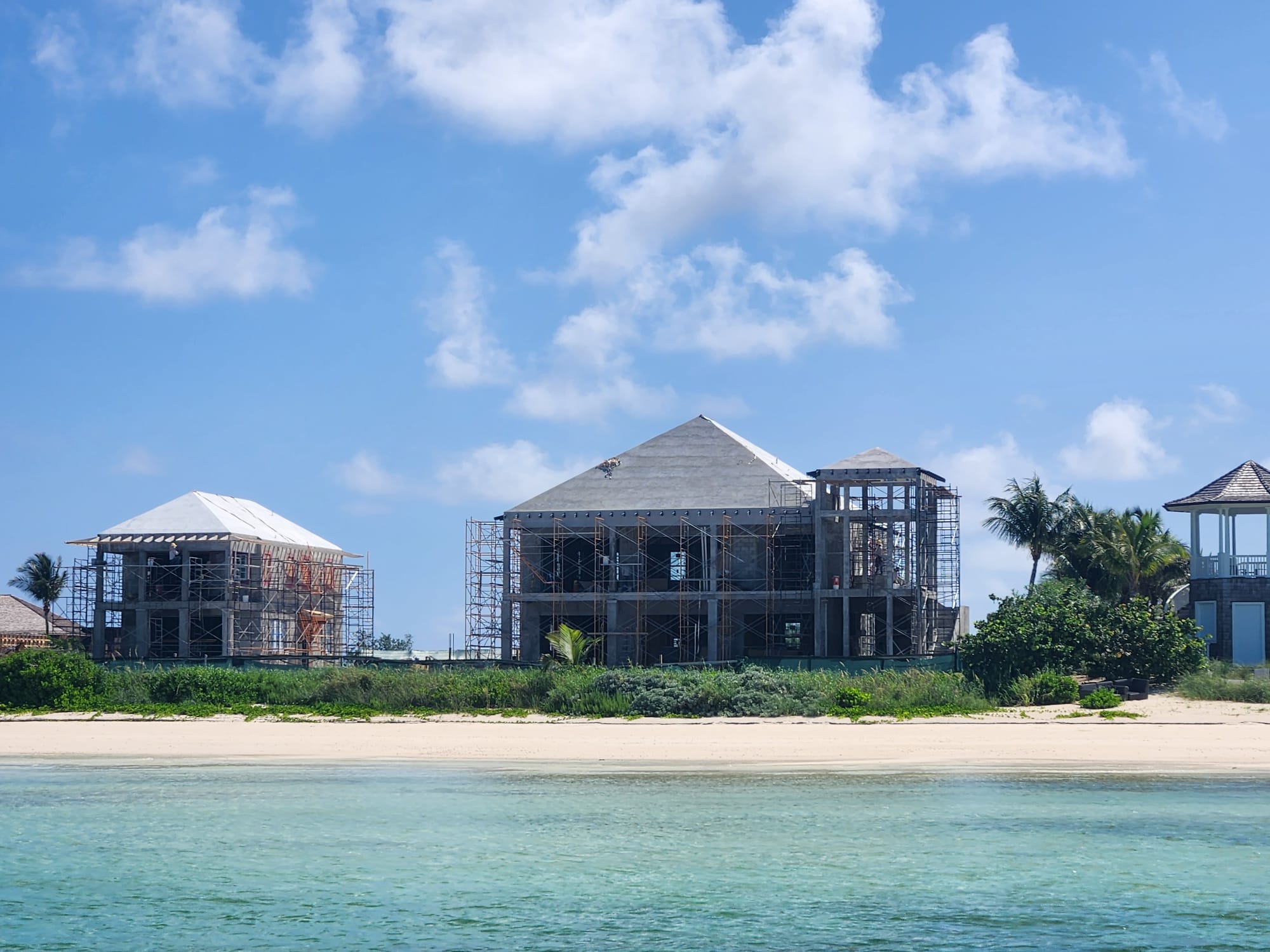 Bluewater Developers logo with a stylized fish design in blue and yellow. Text reads, "Bluewater Developers, Bahamas: 242-809-3381.