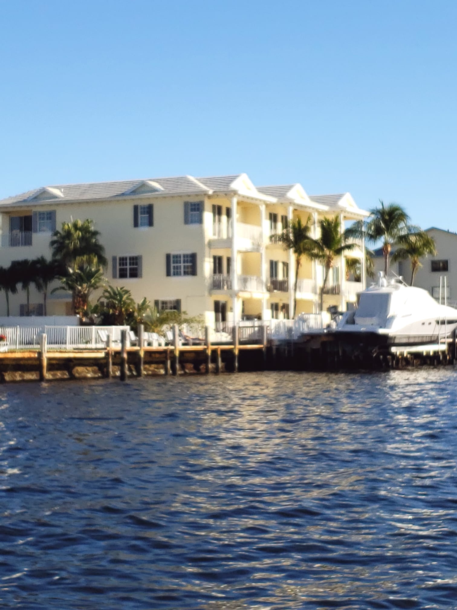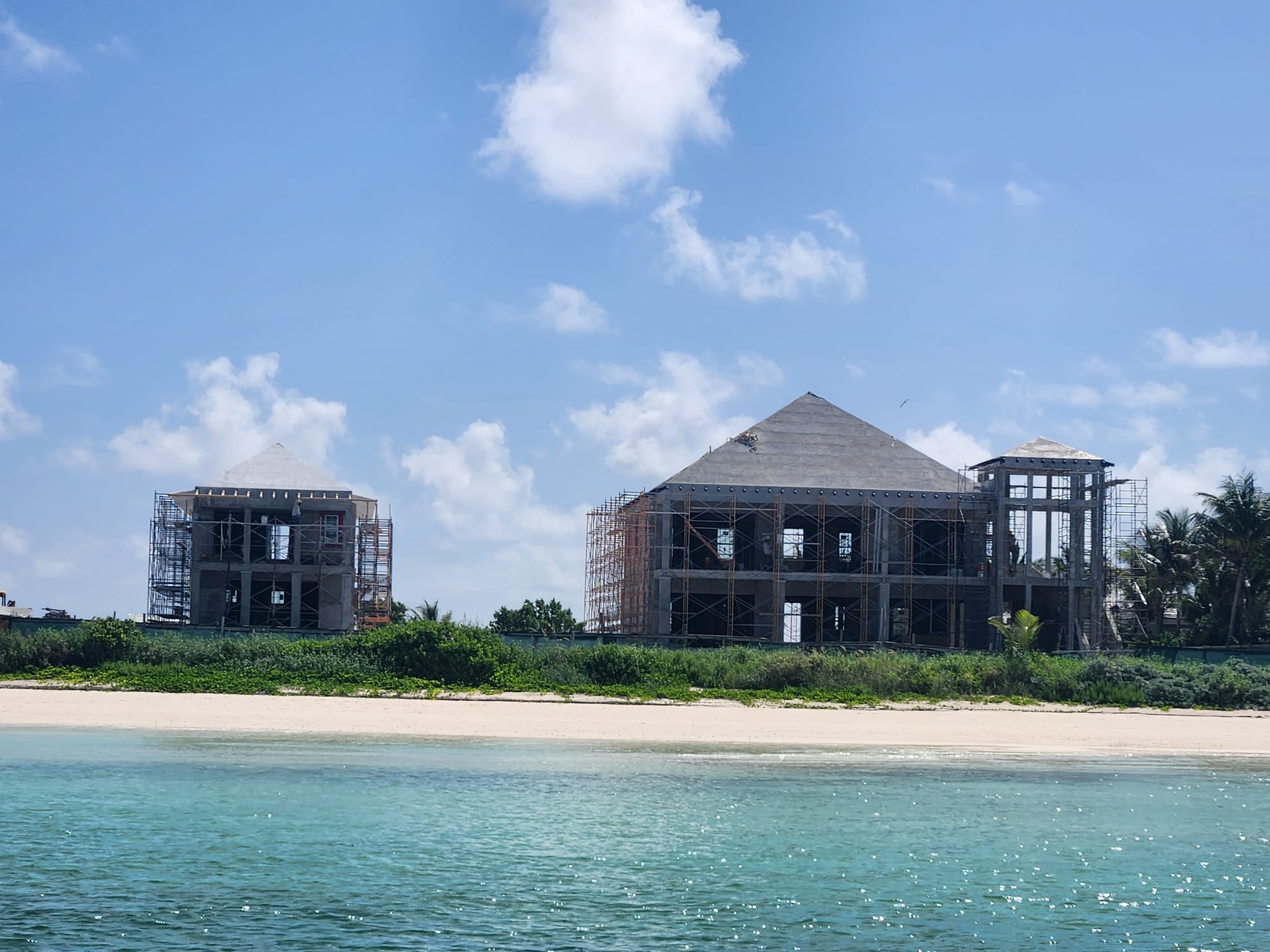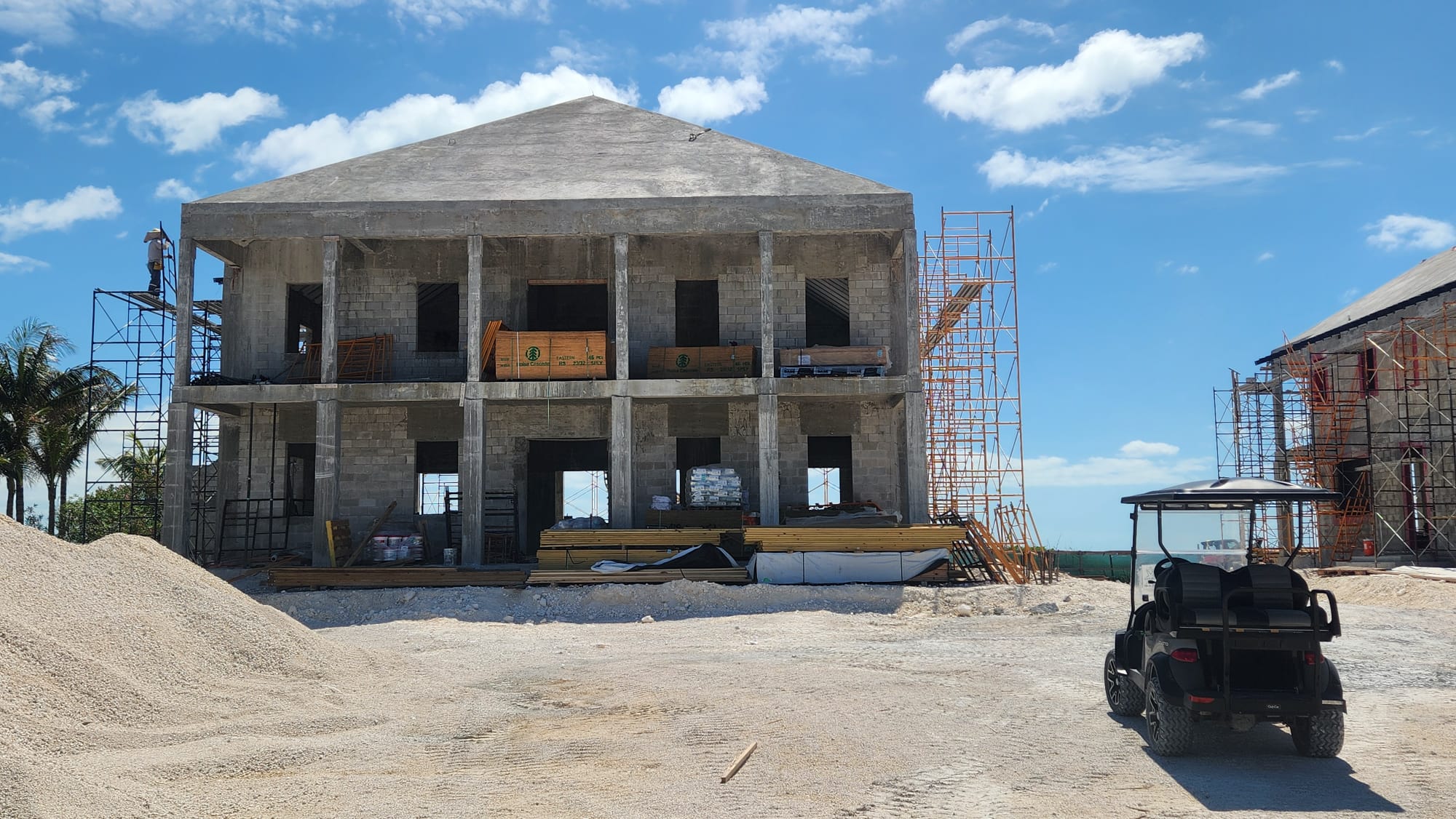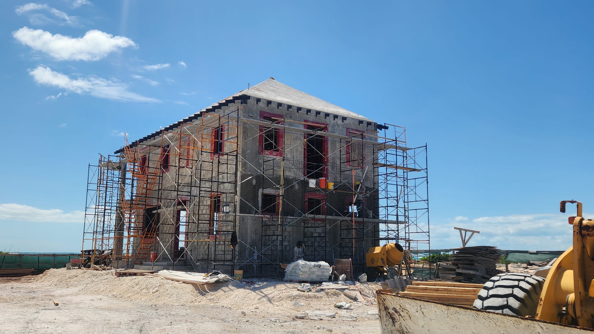 Bluewater Developers logo with a stylized fish design in blue and yellow. Text reads, "Bluewater Developers, Bahamas: 242-809-3381.